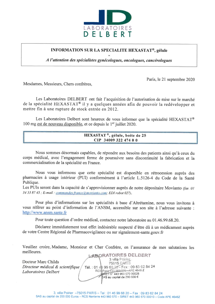 Mise à disposition d’Hexastat, gélule, boîte de 25